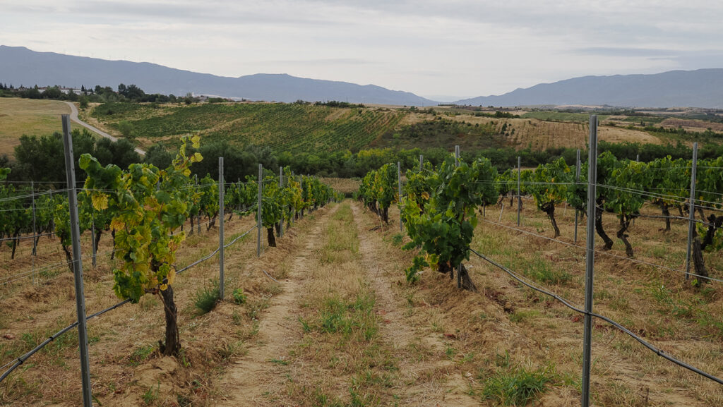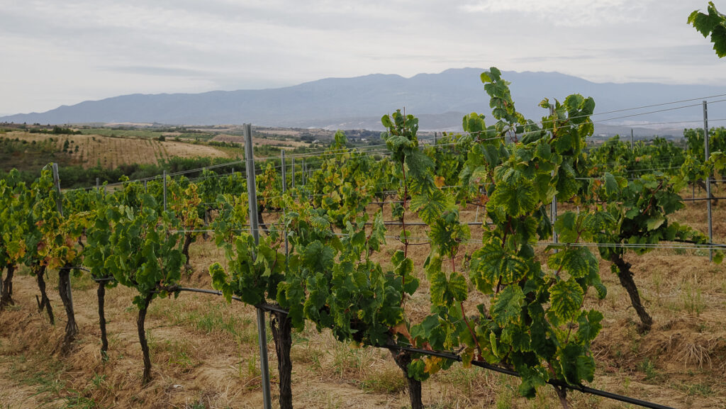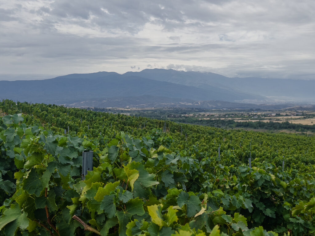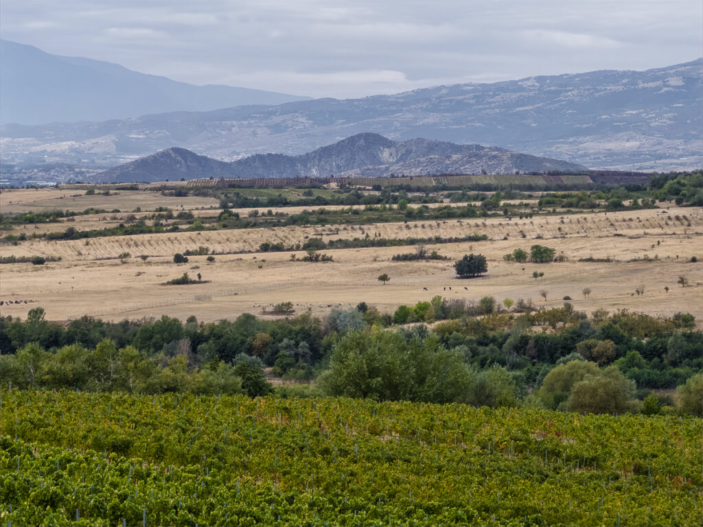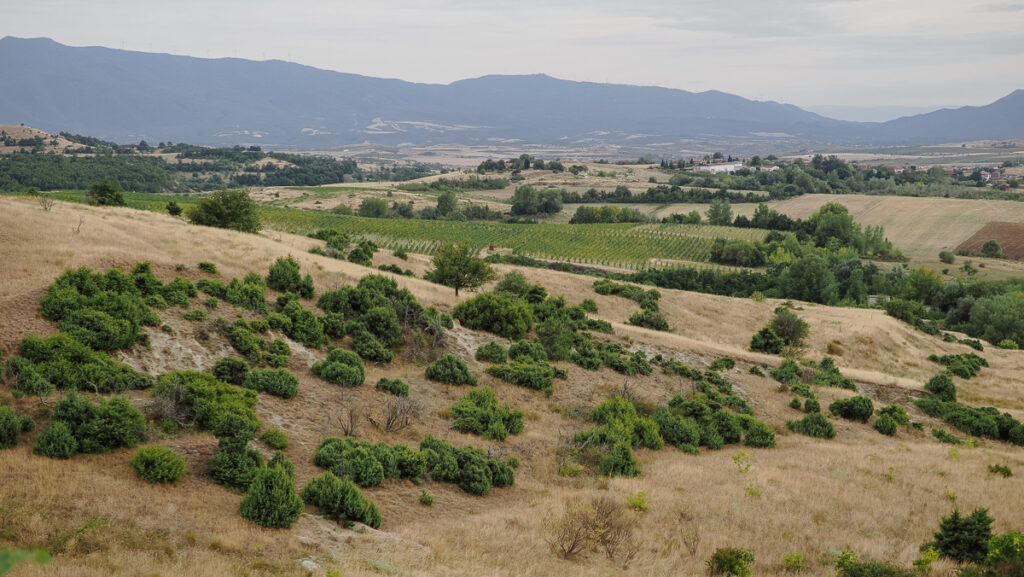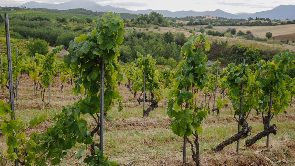 Aya have two vineyards, quite far apart. The first and main vineyard is here is the Struma Valley in a village called Harsovo, not far from the town of Melnik,. The climate here is warm they grow a range of different Melniks, plus international varieties Cabernet Franc, Cinsualt, Syrah, Grenache and Sangiovese among others. There are 35 hectares here, and some of the broadleaf Melink vines that they have recovered are quite old.