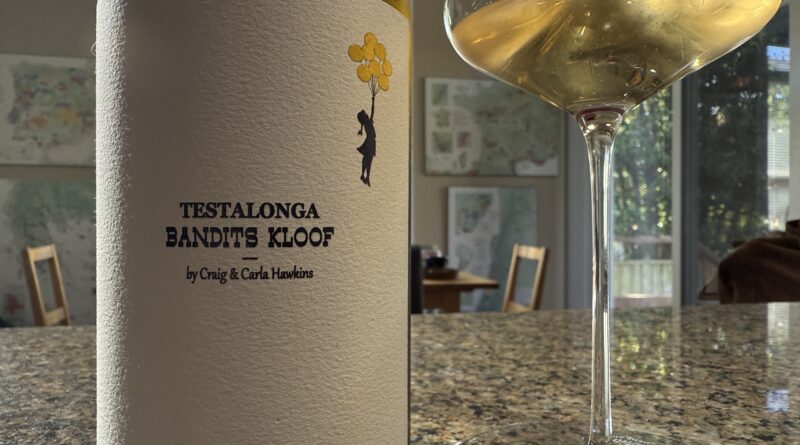 One of the stars of South Africa’s New Wave wine renaissance, Testalonga is Craig and Carla Hawkins’ personal project, dedicated to experimental wines and rescued grapes, often from old vineyards. They were the first of the Swartland Revolution collective to start their own vineyard project, back in 2015, when they moved to a farm in the northern reaches of the Swartland, nestled into the Olifantsberg mountain, called Bandits Kloof (Goode and I visited them on the farm in 2019). This is the first release from the vines they planted there in 2018, an organic Grenache Blanc from head pruned (high bush vines) young vines in decomposed sandstone and shale, at 380m. It was whole bunch pressed into 2 old 400L French barrels, where it took a full year to complete MLF. In all, it remained on full lees 21 months before racking the day prior to bottling, unfined and unfiltered. A waxy sheen underlay supports crystalline quince, verbena, meadow grass, elderflower, pine nut, and brightly shining lemon pith and peel that linger on the stony, saline finish. Ample tangy acidity and youthful energy in this slight (11.11%) white, which needs time in the glass to open and unfurl itself. 92/100