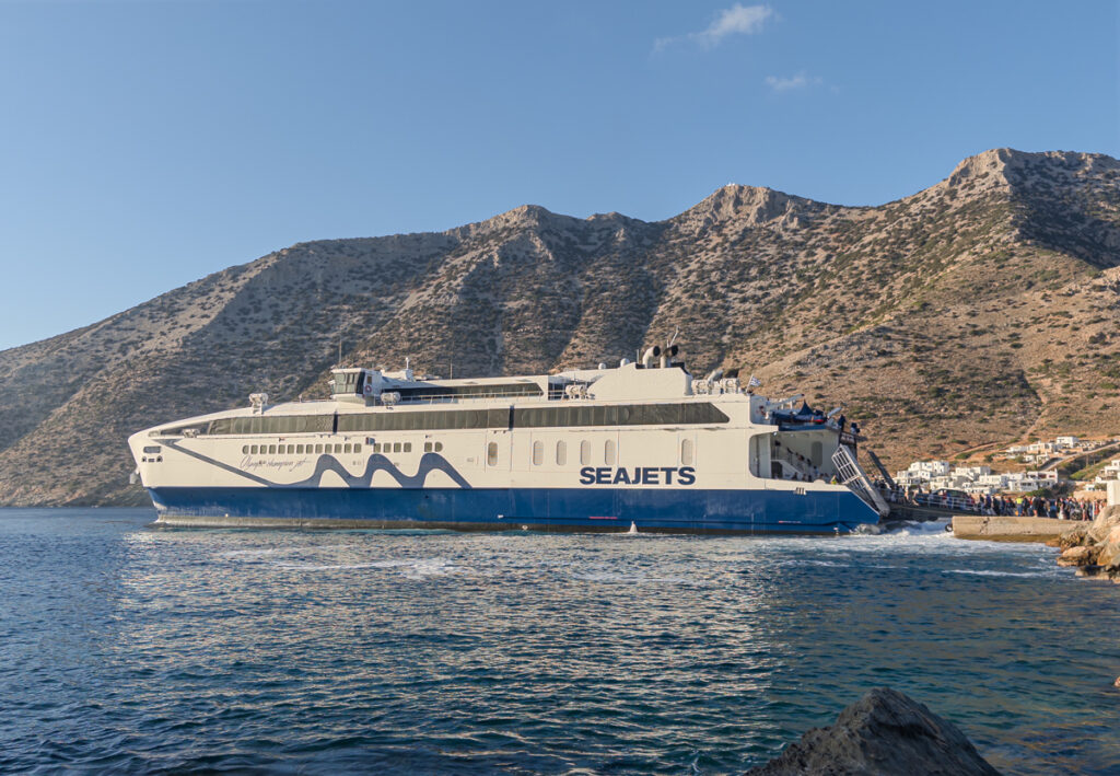 To get here you need to take a ferry. There are various choices, but we opted for the high-speed ferry that gets you here from Piraeus (the main Athens port) in two-and-a-half hours. Both ways we were lucky: calm seas and no winds. Apparently when it is windy the high speed ferry becomes unpleasant, and awash with vomit. Not ideal. And the Aegean is often windy, as was evidenced by the fact that on the third day of our visit all the ferries were cancelled. The slow ferry is more stable, but takes five hours. There’s a cost difference: fast ferry is £120 return for foot passengers, while the slow one is half the price.