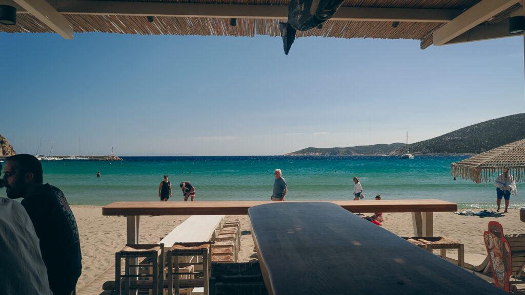 Day two began with an early morning swim, then we headed off to Platis (sometimes ‘Ptalys’) Giallos, where we had a reservation at one of the Island’s leading restaurants, Omega 3. Platys Giallos is a much bigger bay than Cheronisoss, and there are quite a few restaurants here. But it still has charm.