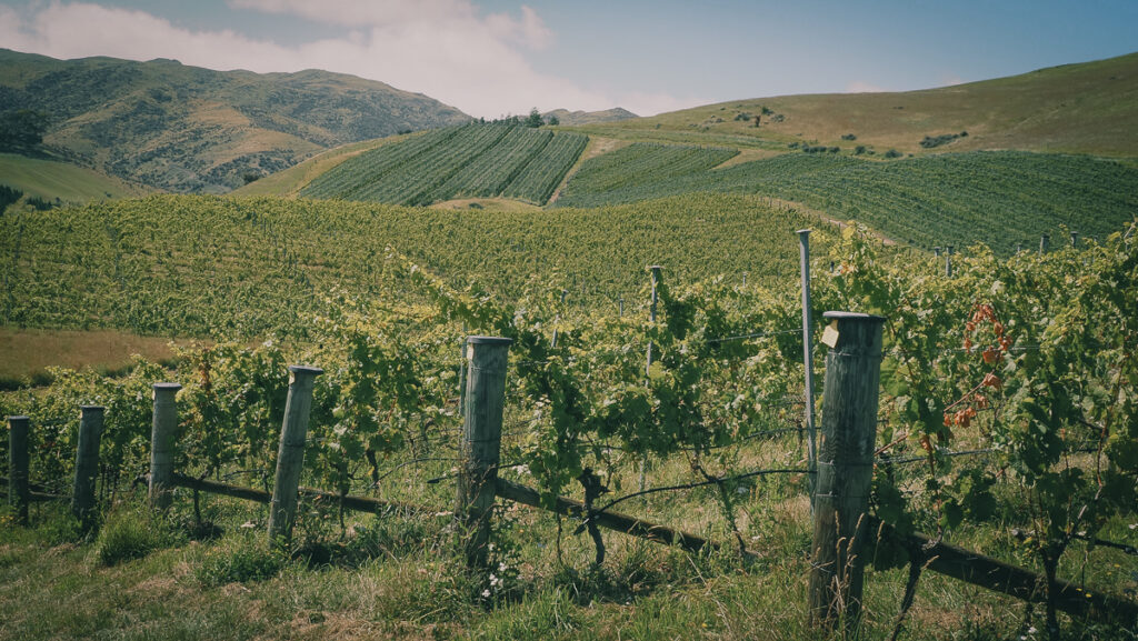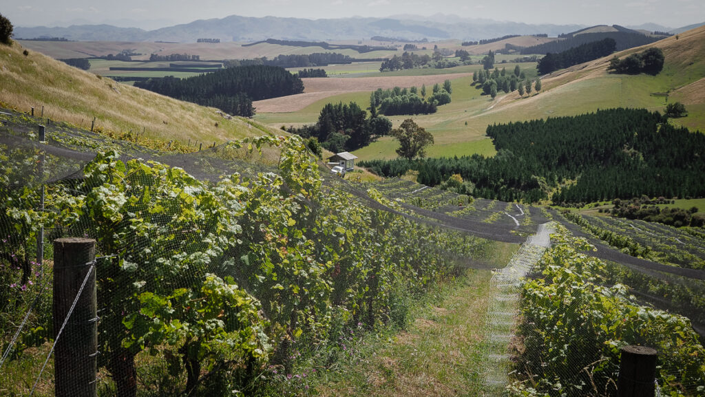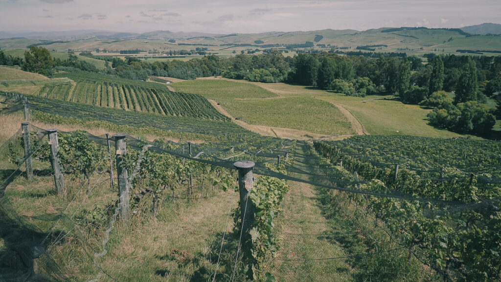 Then there’s the impressive Damsteep vineyard, which is part of the Spye farm that was established in the 1920s. The vineyards here, which are steeply sloped (hence the name), were planted in 1999, and Black Estate have 16 hectares of which 7.5 hectares is vineyard: Riesling and Pinot Noir on Waipara clay. There are some limestone outcrops here, too. They bought fruit from here from 2008 and purchased it in 2012.