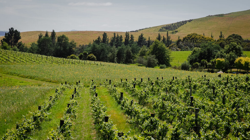 The home block is on sedimentary clay soils, typical of Omihi, and Nick and Pen are going to convert part of this to a high trellis so they can run sheep even in the growing season, similar to the development on one of the blocks at Greystone. In 2011 they planted the block on the top, with Chardonnay, Cabernet Franc and Chenin Blanc, as well as a couple of hectares of Pinot Noir.