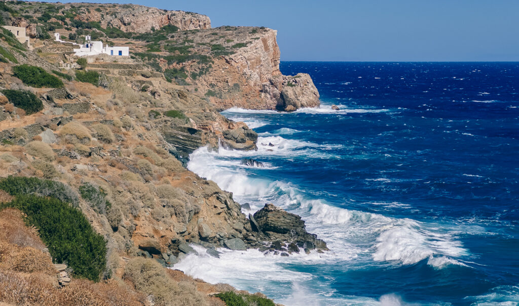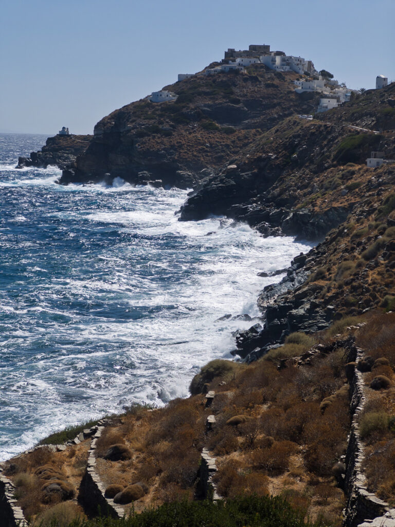 The second day in Kastro. We walk into the village and then take a path down to view the famous Church of the Seven Martyrs (pictured above). But this cliff path doesn’t feel all that comfortable when the wind is blowing as strongly as it was on this day, so we took some pictures and headed back.