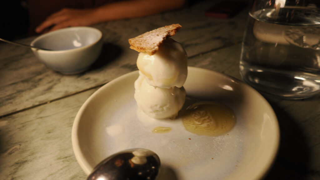 Food here is superb. And there’s a legit wine list, although two weeks before the end of the season it had started to thin out a little. It’s natural/low intervention dominant, and for me that’s a good thing. We broke our rule of drinking just Greek wine, and opted for something good from Hungary, followed by a Santorini white and