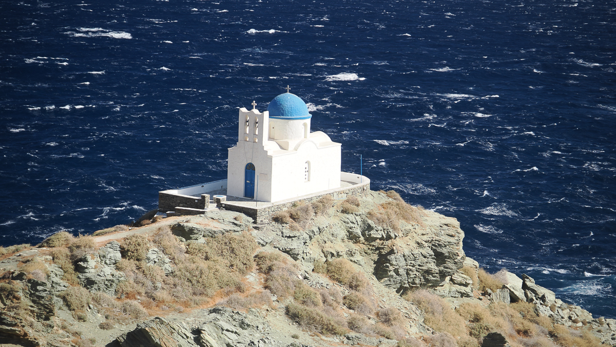 The second day in Kastro. We walk into the village and then take a path down to view the famous Church of the Seven Martyrs (pictured above). But this cliff path doesn’t feel all that comfortable when the wind is blowing as strongly as it was on this day, so we took some pictures and headed back.