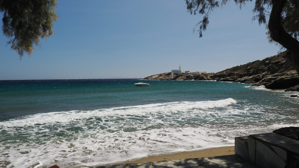 After lunch, we took the clifftop path to Faros, a neighbouring bay. This is a breathtaking walk, especially on a bright, breezy day. Faros is also lovely, and has Pelicanos, the sister restaurant of Cantina, which we’ll have to check out next time. We swam here, and then walked back, checking out the monastery before heading to Vahti Bay, where we were staying for the night.