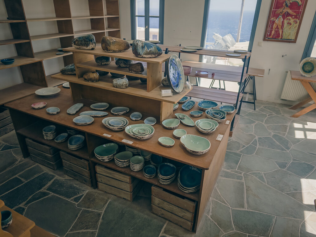 A little ceramic postscript. When we were at Cantina, we admired the ceramics they were using. So we found out where they came from, and made a visit. It was Sifnos Stoneware. This is in the village of Artemonas, and was founded in 2006 by Antonis Kalagirou. His family had a history of ceramics, but moved to the USA, and then after 30 years back to Sifnos. Antonis studied engineering at Nottingham (UK) university, before deciding to join the family trade. The work he does is fantastic.