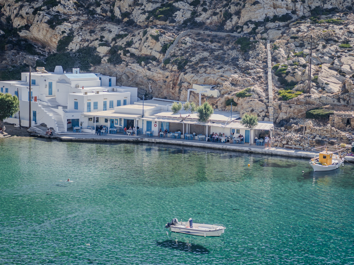 So the final day. We weren’t catching the ferry until 5 pm, so it was back to Cherinissos for the magical bay and the fish tavern. Lots of swimming, and a brilliant lunch: this time we drank a bottle of the amazing Sclavos white that I’d bought at Mr Vertigo at the beginning of the trip. It was gorgeous in this setting. What a beautiful few days.