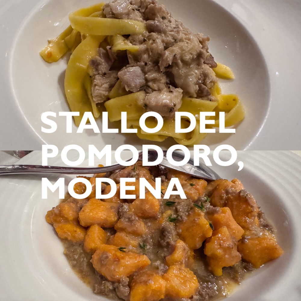 Everything is on point here. Great local dishes, a lovely setting, and a wine list worth exploring. The place to eat in Modena, unless you are rich and chasing a multi-Michelin star tasting menu experience. https://stallodelpomodoro.it/