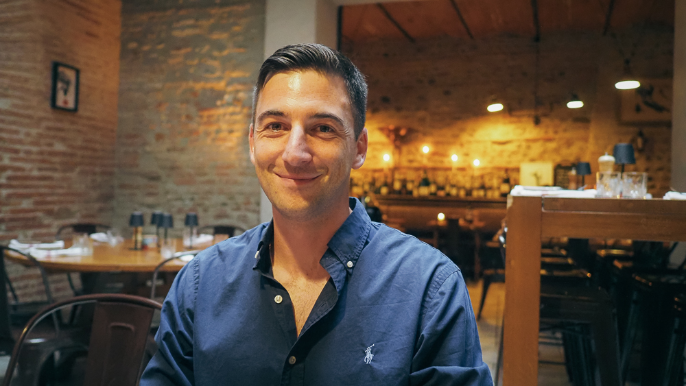 Torredemer Mangin is an exciting new producer in the Roussillon. It’s a collaboration between Romain Torredemer (aged 33) and Thomas Mangin (aged 30, pictured above), who are grandsons of winegrowers who have put together a new domaine, with 40 hectares of organically grown vines in a part of the Roussillon called Vingrau. I met with Thomas over dinner to hear the story and taste the wines.