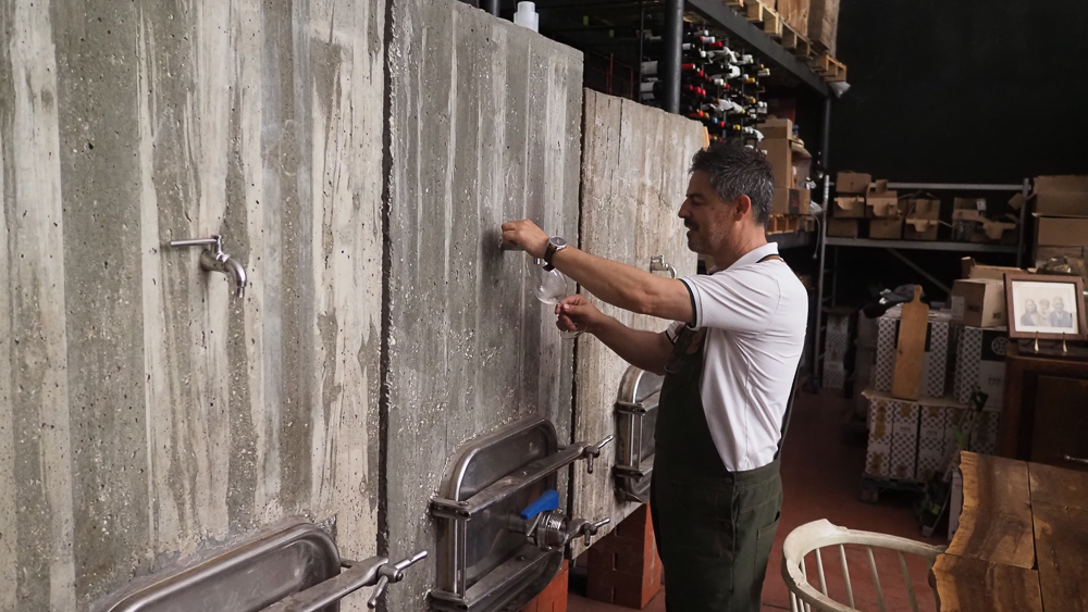 Rui’s background is construction, and in the winery there are some concrete tanks that he built himself using limestone cement.