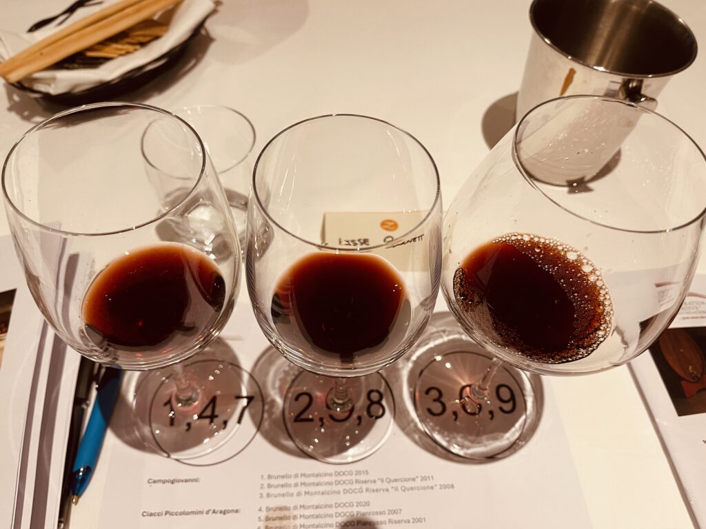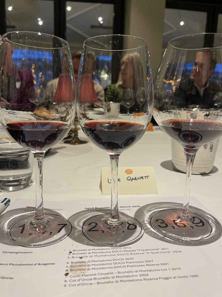 Invited by The Libération Tardive Foundation to taste back vintages of three Brunello di Montalcino producers, Campogiovanni, Ciacci Piccolomini d’Aragona and Col d’Orcia, Conti Marone Cinzano, we tasters tested the theory that good wine takes time.