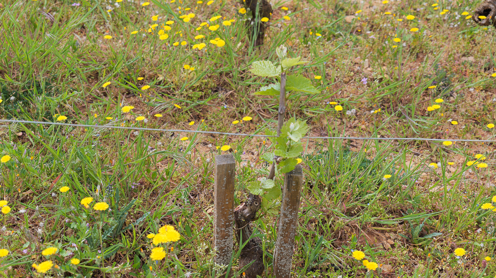 This is a replacement vine, protected by two small pieces of wood. This is second year, I suspect.