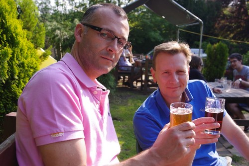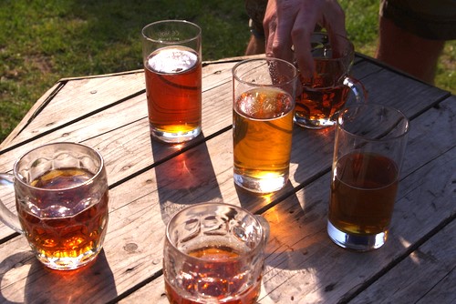 Yesterday afternoon I headed over to the White Horse in Hedgerley in the good company of brothers in law Dominic and William (above). There was a mini ale festival on, so we sampled quite a few different beers, sitting in the sunshine in the pub garden.