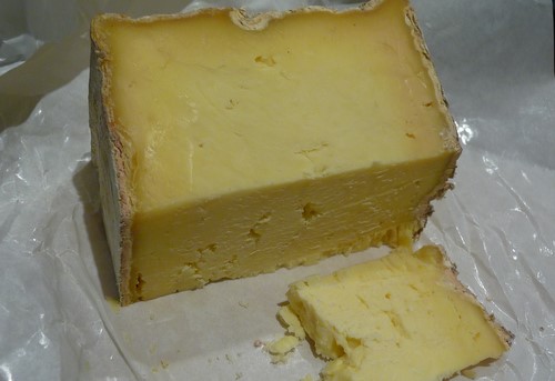 The first: a cheese. It’s a Caerphilly from Neal’s Yard (Gorwydd, Wales). Tangy, slightly sour and bitter, but also creamy and rich. Lovely intensity, without being in any way overpowering. Slightly crumbly, dry texture.
