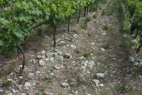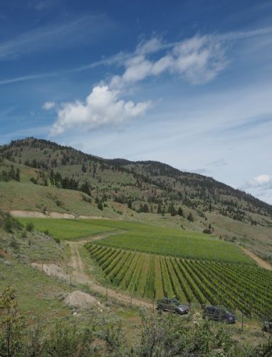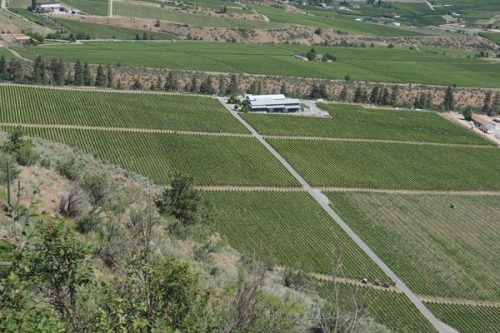 They used Sutre’s expertise to find the right site, and their goal was to make a Bordeaux blend. They identified five potential vineyard sites, and then did a cull using data from temperature loggers. The most exciting site was the one they bought, which was then virgin land. They were keen not to inherit other people’s decision making. This site is in what is now known as the Golden Mile, the Okanagan’s first official sub-region. It’s an ancient river bed, combined with fluvial flooding deposits, and it’s quite rocky. It faces south east.