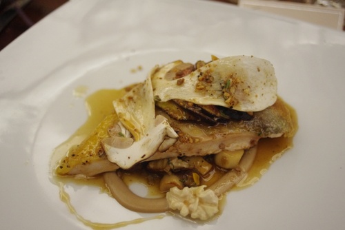 We shifted to the Beaune Greves 1993 for the next course: breast of guinea fowl with walnut milk, ceps and figs. So imaginative, and the guinea fowl was really tender.