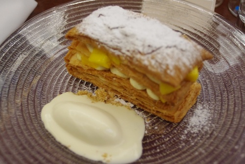 Finally, a remarkable mille feuille with mango, honey, vanilla and kaffir lime. With the 1986. An astonishing lunch in a lovely setting.