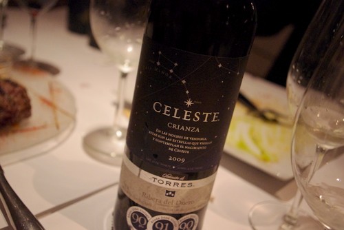 Then a pair of reds. Both benefited from some time in the ice-bucket making me suspect that these rather warm bottles may have been a little heat damaged, although they are quite young and presumably don’t hang around the restaurant too long. Torres Celeste Crianza 2009 Ribera del Duero is a nicely balanced, focused red with subtle oak influence and nice fruit definition. I think this was around 15 Euros, but can’t be sure. Great with my teriyaki beef.
