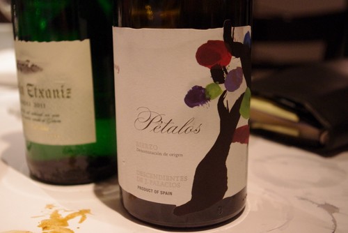 On the wine front we kicked off with Txomin Etxaniz 2011 Txakoli, a beautifully precise, fresh, pure white wine from Basque country in the northwest, with just a little spritz to it. Remarkably good considering this is just 12 Euros on the list. Good with our sushi.