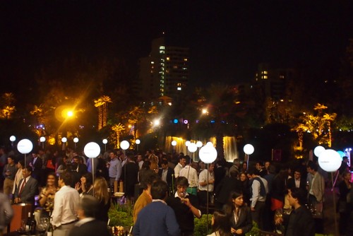 Last night I headed over to the Grand Hyatt in Santiago for a remarkable wine festival. It was fortunate that of the two nights I was in town, one should coincide with this event. Organized by Patricio Tapia, It wasn’t cheap at 42000 Pesos (around £50), but there was an amazing array of Chilean wines on show, together with lots of gourmet food stands, all around the spectacular Grand Hyatt pool.