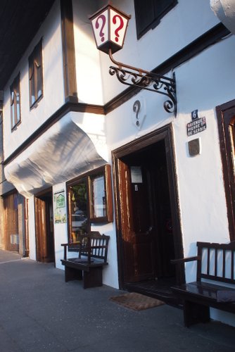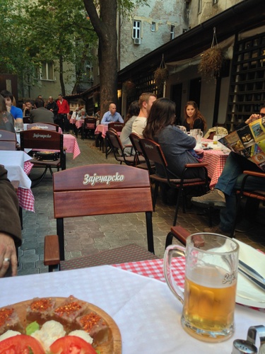 Lunch at the question mark restaurant, Znak Pitanja, the oldest tavern in Belgrade. Amazing to sit outside in November.