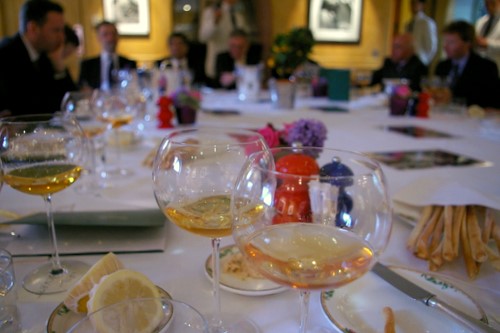 I spent the morning filming undercover with the BBC (which was very exciting; I’ll tell you more when I can), before heading over to Aspinall’s on Curzon Street for an incredible lunch (see The Metro review), with a vertical of the wines of Josko Gravner, one of the world’s most interesting wine growers.