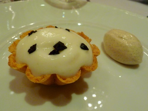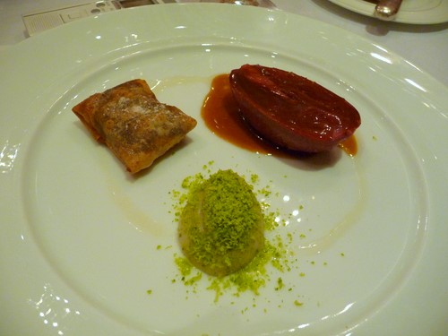 The food at Hibiscus was really creative. Pictured above is the main dish of wood pigeon served with a pastilla and onion and almond puree topped with pistaccio. Below is a fine cream tart of white asparagus with some candied black olives (sweet, but with a savoury dimension) and vanilla ice cream.