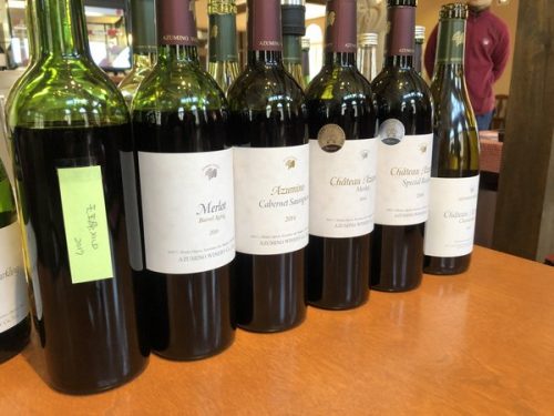 In 2008 they planted Chardonnay and Merlot in front of the winery, and a year later planted Cabernet Sauvignon. In 2014 they planted some Sauvignon Blanc. Chardonnay is the dominant variety (50% of their vineyard, but 20-30% of production), with Merlot second. They also use Concord and Niagara, and make some cider using the traditional Kogyoku variety of apple. It’s a small apple with nice acidity.