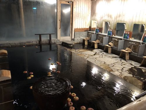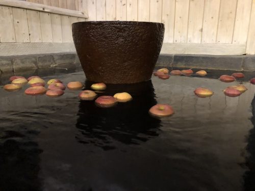My trip began last night. I arrived in Tokyo, took three trains, and ended up in Komoro in Nagano Prefecture. I stayed at Nakadanaso, which is a historical riyokan (traditional inn) with a famous onsen (thermal bath). I was here last year, and it is one of my favourite places. There are two parts to the thermal bath, indoors and outdoors. The indoor one has apples floating in it, which are a tribute to famous poet Toson Shimazaki who stayed here frequently, and wrote a well known poem called First Love, which is think is the connection with the apples.