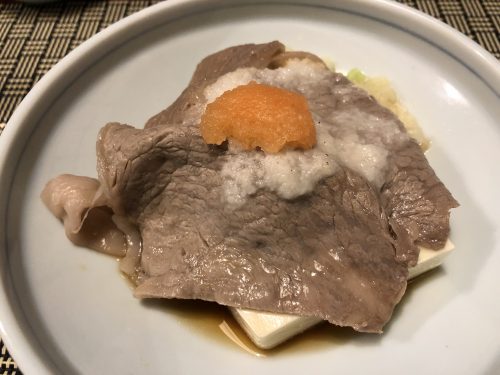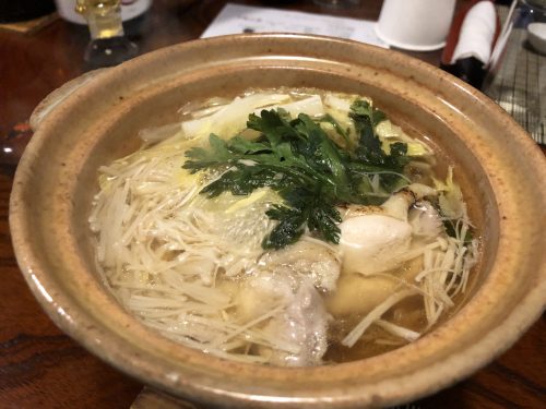Pot dish with grated radish, including chicken, Chinese cabbage and enoki mushrooms