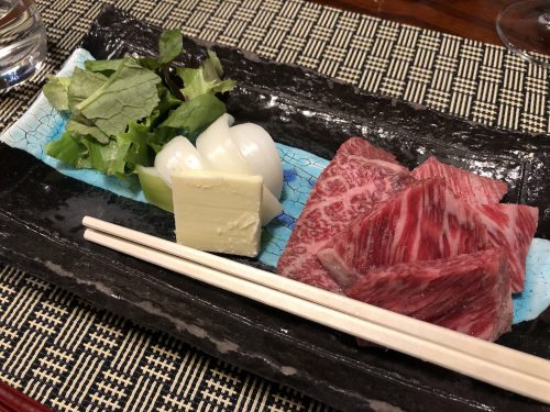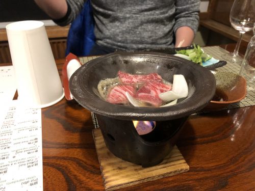 Shinshugu beef: cows fed on apple to make the beef more tender, and then we finished with boiled rice with green peas