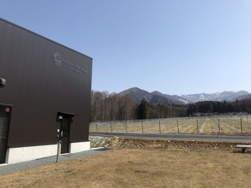 The impressive winery was built in 2015, and is in the village of Takayama, which is high up in the valley, looking down towards Nagano City and the Chikuma River. We’re at 650 m altitude here, and the vineyards, which track an alluvial fan from the Matsukara river down from the mountain, begin at 400 metres and go all the way up to 850 metres, giving a diversity of climates.