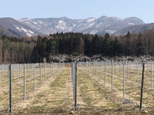 The first planting of vinfera in the village was Chardonnay in 1996, and the farmer was a contract grower for Mercian. Mercian and Suntory are two larger wineries who have made  Chardonnay with the name of the village on the label, and these won lots of awards, which got people interested in Takayama. The local government has been supportive of vineyard development, and from just 3 hectares in 2008, there are now 50 hectares, although the current productive vineyard is 40 hectares.