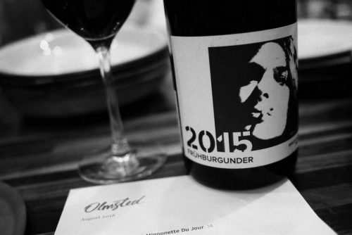 Olmsted is described as a neighbourhood restaurant, but it’s becoming quite famous, simply because the cooking is excellent (inventive and utterly delicious), and it’s very modestly priced considering how good it is. The wine list is compact and not-too-predictable, and we chose something a bit unusual: the first time I’ve tried a wine from Saale-Unstrut, the most northerly of Germany’s wine regions.