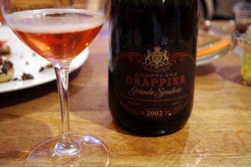Drappier: an under-rated Champagne house. This, the rare Grande Sendree Rose 2002, was just beautiful. Quite vinous and deep coloured.