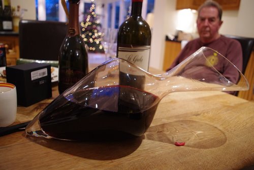 A rather smart magnum decanter from Riedel. My brother in law Beavington’s Christmas present to himself. It’s filled with Allegrini La Grola 2006, which is delicious, ripe and very easy to drink.