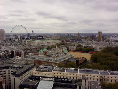The views from the Penthouse at New Zealand House are some of the best in London. Excuse the poor camera phone quality, but below I have two shots. Top, we see across the back of Downing Street to Buckingham Palace, and then the Palace of Westminster. Then below this, we see Trafalgar Square, with Nelson’s column, looking east to the City of London. Interestingly, behind the elegant facade, the National Gallery is quite an ugly building.