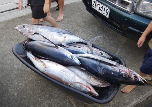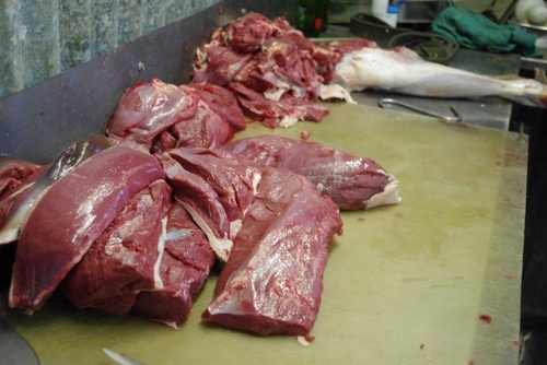 Then it was time to find some supper. James took me round to his buddy Boyd, who was just in the process of butchering a deer. This was an educational process, seeing how to get the different cuts, and what meat should be kept and what should be discarded. Boyd had also been out fishing, so James managed to score a big chunk of albacore tuna.