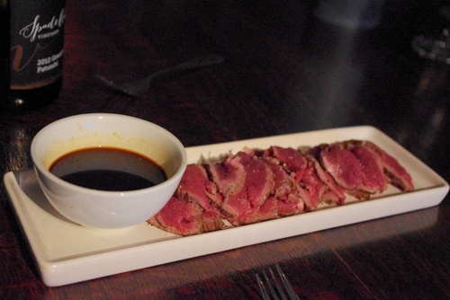 Dinner was delicious. Deer fillet, lightly seared on the outside, raw inside. Tuna sushi, and then lightly seared with a salad. Memorable, especially with the sound of the sea in the background.