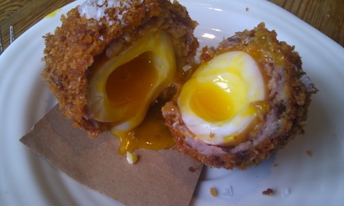 Had a brilliant day yesterday. It began with lunch at the Harwood Arms, together with Joe Wadsack, Will Willis and Stuart Bowman-Hood. Proceedings began with a pint of Sambrook’s junction: rich, a bit hoppy, and with a distinct note of eggy sulfide (Burton stink is the correct term for this?). This went very well with the Harwood scotch egg. I should point out for the record that Stuart declined his scotch egg, and was very slow with his pint. He was hung over from a party the night before. The shocker? He got drunk on Gewurztraminer. This must be the first recorded cases of a Gewurz-inspired hangover ever. I’m sure of it.