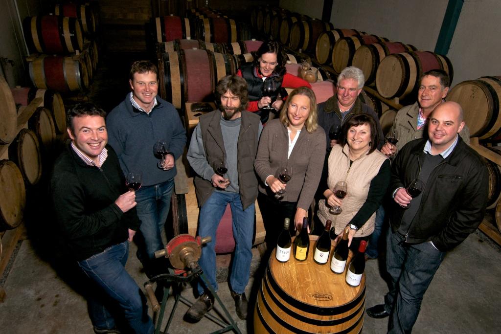 Pictured (from left): Willie Hoare (Fromm), Jason Flowerday (TWR), Hätsch Kalberer (Fromm), Anna Flowerday (TWR), Claire Allan (Huia), Mike Allan (Huia), Therese Herzog (Herzog), Hans Herzog (Herzog) and MJ Loza (Seresin)
