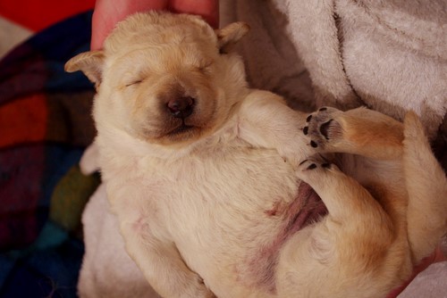 Fat slug has finally opened her eyes, just a bit. And she’s got a lot, lot fatter. She’s a giant puppy.