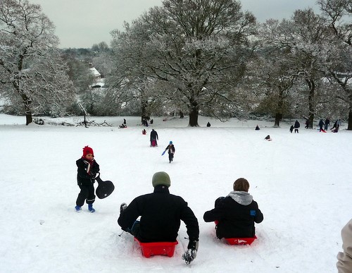 I had it easier. A friend popped round with his kids and younger son and I went out sledging on Cooper’s Hill, near Egham. We couldn’t stay too long, though, because of the fat slug at home with RTL.