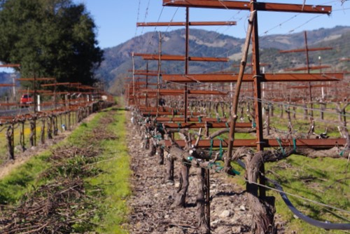 2. same photo different query to paul for me jamie….. why the vine concentration camp look ? i’ve never seen anything like that before. perhaps with it being california that each vine has it’s own tv aerial and a flat screen gets rolled out in due course to entertain them – if you force fed them 10hours a day of jerry springer/similar genre it would bring a whole new perspective to ‘stressing the vines’ !