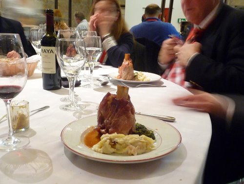 We had these with dinner on Friday, held at a restaurant next to the free-slowing Mondego river. Pictured is the main course – a deliciously rustic knuckle of pork.