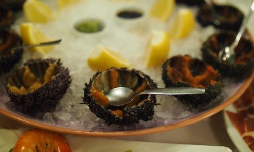 The food here is excellent. We started with shrimp, followed up with amazing sea urchins, and also had some beautiful sea bass – simply prepared with nothing added. The wines were quite something, too.