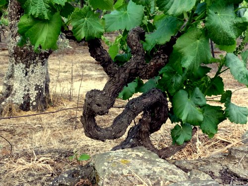 Added later: I never whisked off, but tomorrow I’m off to see Sogevenius. Pictured top is a scraggly old vine in a small vineyard over the road from the hotel here in Vila Real, and below is another old vine in flower (almost).