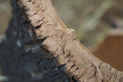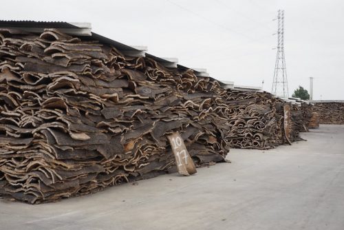 Then a team goes through the piles and sorts them by grade. One mound is suitable for punching corks from; one is thinner bark that will be used to make granules, and one pile is rejected, and ends up being used for other purposes. The cork bark is then stacked and is left outside to weather for a minimum of six months.