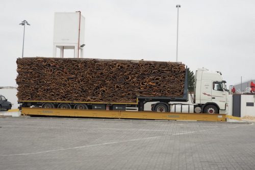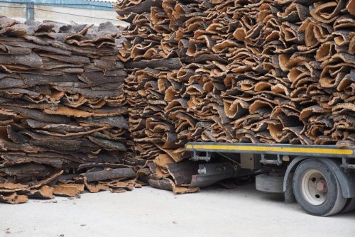 Cork oaks are unusual: if you strip the bark of most trees, they will die. This is because the cambium layer, which is what creates the new vascular tissue, is stripped as well. While water flows up the xylem vessels in the trunk, the sugars from photosynthesis are transported by the phloem, and this is removed with the cambium causing the tree to die. Cork bark can be removed without damaging the cambial layer, and keeping the phloem in place. The cork is collected and loaded onto trucks, and then reloaded onto larger trucks to take them to the processing plant. Most cork companies have a processing plant in the south, near the forests, where they prepare the cork planks, stack them on a pallet, and then send them up to the cork factories in the north, near Porto.